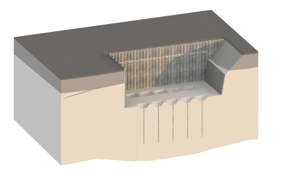 Der Begriff „Geotechnisches Bauwerks-Modell“ umfasst alle Elemente, die für die geotechnische Planung relevant sind. Dazu gehören in der Praxis Baugrubenverbauten, Gründungen, Bodenverbesserungen, Brunnen- sowie Versickerungsanlagen.